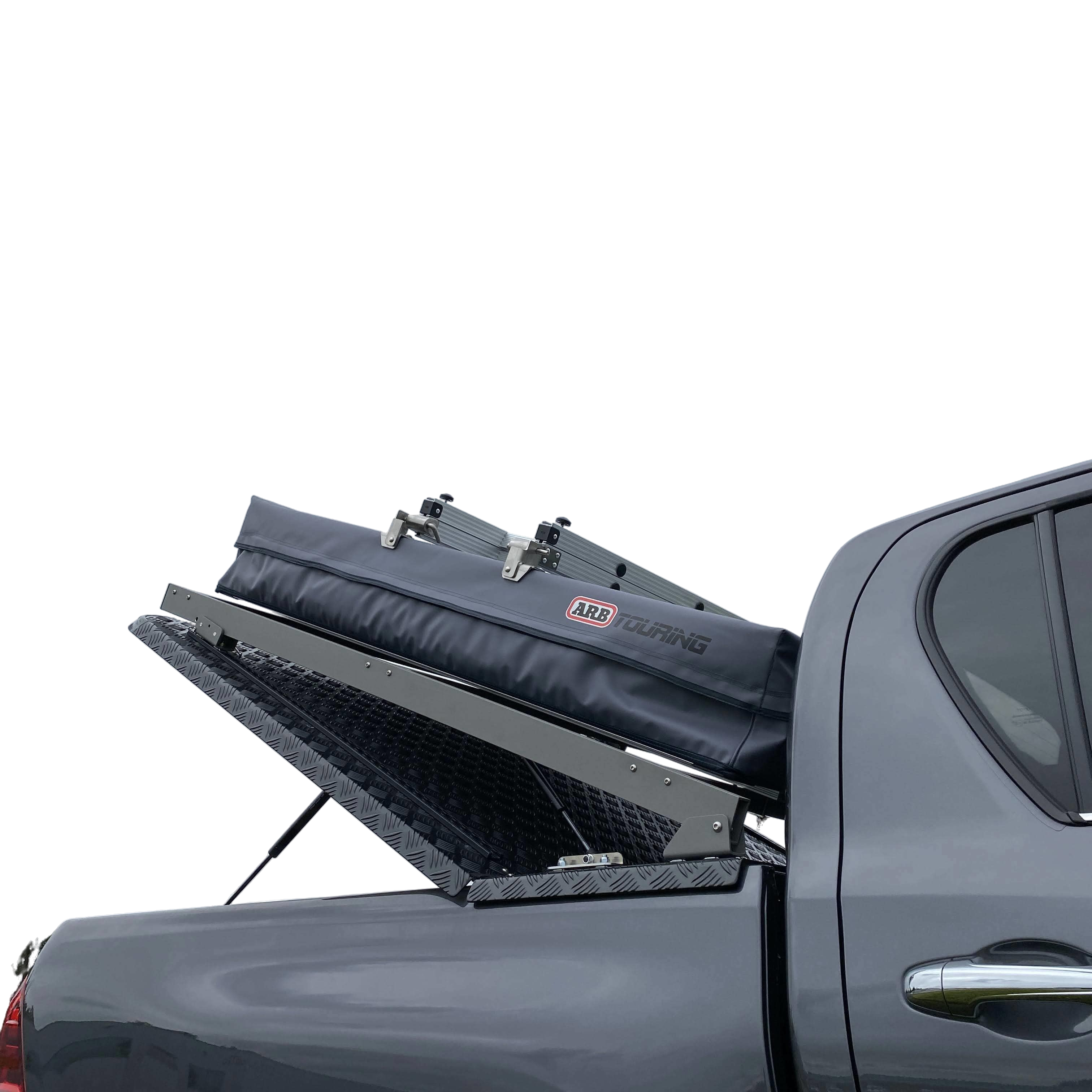 Top-Cover – Ladeflächenabdeckung aus Aluriffelblech Bei diesem Top-Cover beträgt der klappbare Teil ca. 70% der Gesamtlänge. Die Abdeckung wird aus salzwasserbeständigem Aluriffelblech gefertigt und ist damit ideal für den Einsatz unter anspruchsvollen Bedingungen. Ein zusätzlicher Rahmen auf der Unterseite der Klappe sorgt für maximale Stabilität und lange Haltbarkeit. Je nach Trägersystem können Lasten von bis zu 250 kg sicher transportiert werden. Dank der 22-mm-Edelstahlreling lassen sich über ein Grundträgersystem Fahrradträger oder sonstige Gegenstände zuverlässig befestigen und transportieren. Das praktische Easy Mount System ermöglicht ein einfaches und schnelles Abnehmen des Top-Covers vom Fahrzeug.
