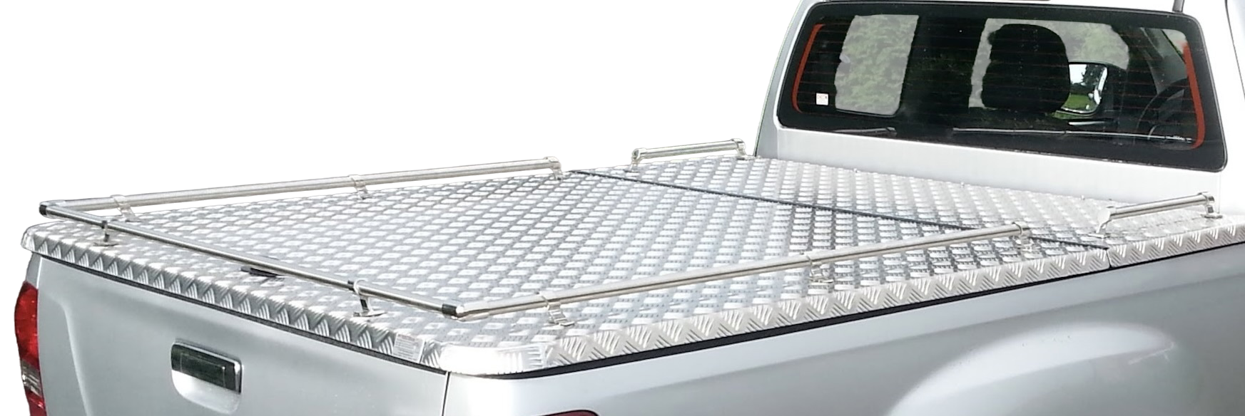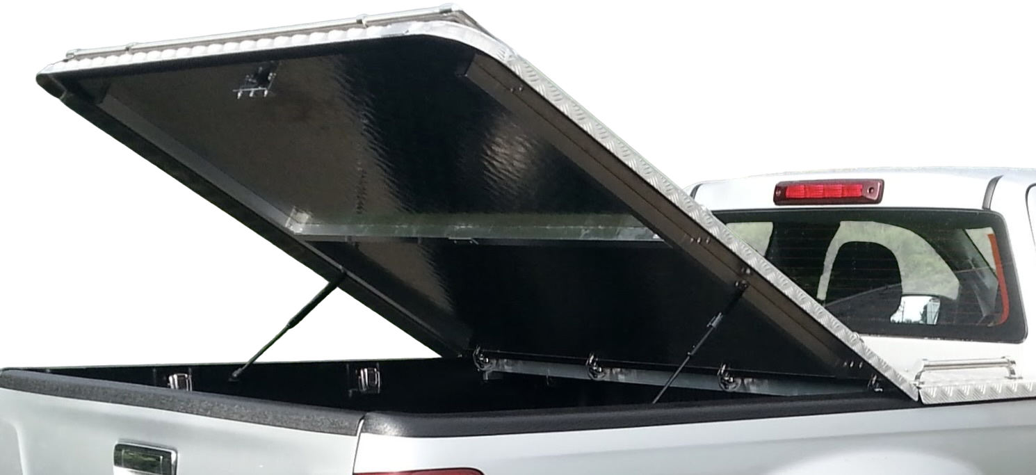 Top-Cover – Ladeflächenabdeckung aus Aluriffelblech Bei diesem Top-Cover beträgt der klappbare Teil ca. 70% der Gesamtlänge. Die Abdeckung wird aus salzwasserbeständigem Aluriffelblech gefertigt und ist damit ideal für den Einsatz unter anspruchsvollen Bedingungen. Ein zusätzlicher Rahmen auf der Unterseite der Klappe sorgt für maximale Stabilität und lange Haltbarkeit. Je nach Trägersystem können Lasten von bis zu 250 kg sicher transportiert werden. Dank der 22-mm-Edelstahlreling lassen sich über ein Grundträgersystem Fahrradträger oder sonstige Gegenstände zuverlässig befestigen und transportieren. Das praktische Easy Mount System ermöglicht ein einfaches und schnelles Abnehmen des Top-Covers vom Fahrzeug.