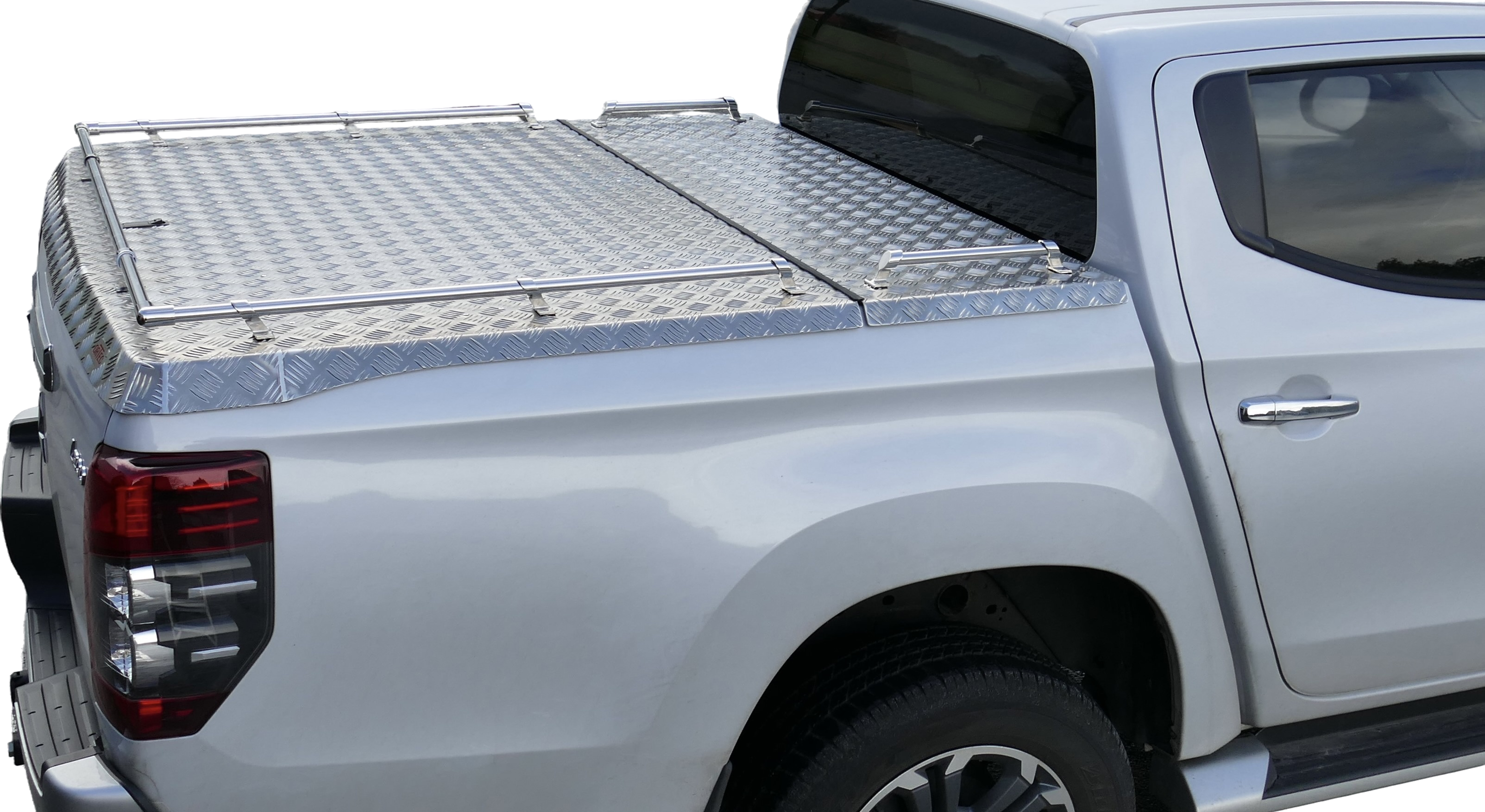 Top-Cover – Ladeflächenabdeckung aus Aluriffelblech Bei diesem Top-Cover beträgt der klappbare Teil ca. 70% der Gesamtlänge. Die Abdeckung wird aus salzwasserbeständigem Aluriffelblech gefertigt und ist damit ideal für den Einsatz unter anspruchsvollen Bedingungen. Ein zusätzlicher Rahmen auf der Unterseite der Klappe sorgt für maximale Stabilität und lange Haltbarkeit. Je nach Trägersystem können Lasten von bis zu 250 kg sicher transportiert werden. Dank der 22-mm-Edelstahlreling lassen sich über ein Grundträgersystem Fahrradträger oder sonstige Gegenstände zuverlässig befestigen und transportieren. Das praktische Easy Mount System ermöglicht ein einfaches und schnelles Abnehmen des Top-Covers vom Fahrzeug.
